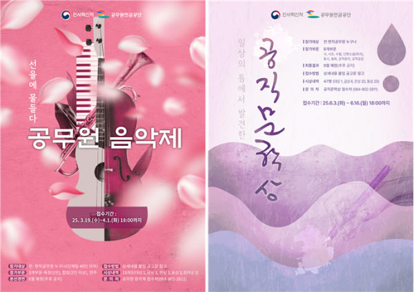 인사혁신처와 공무원연금공단은 창의적이고 활기찬 공직문화를 꽃피우고 나눔 문화를 확산하기 위해 ‘2025 공무원예술대전’의 진행 일정을 담은 통합 계획을 20일 발표했다.
