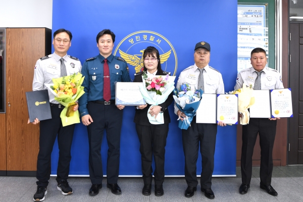 [충청25시] 당진경찰서는 20일 지난해 하반기 충청남도 경찰청 주관 ‘베스트 자율방범대’에 선발된 당진1동자율방범대와 ‘최고 자율방범대원’에 선발된 송산자율방범대 박은수 대원에게 인증패·감사장을 수여했다.