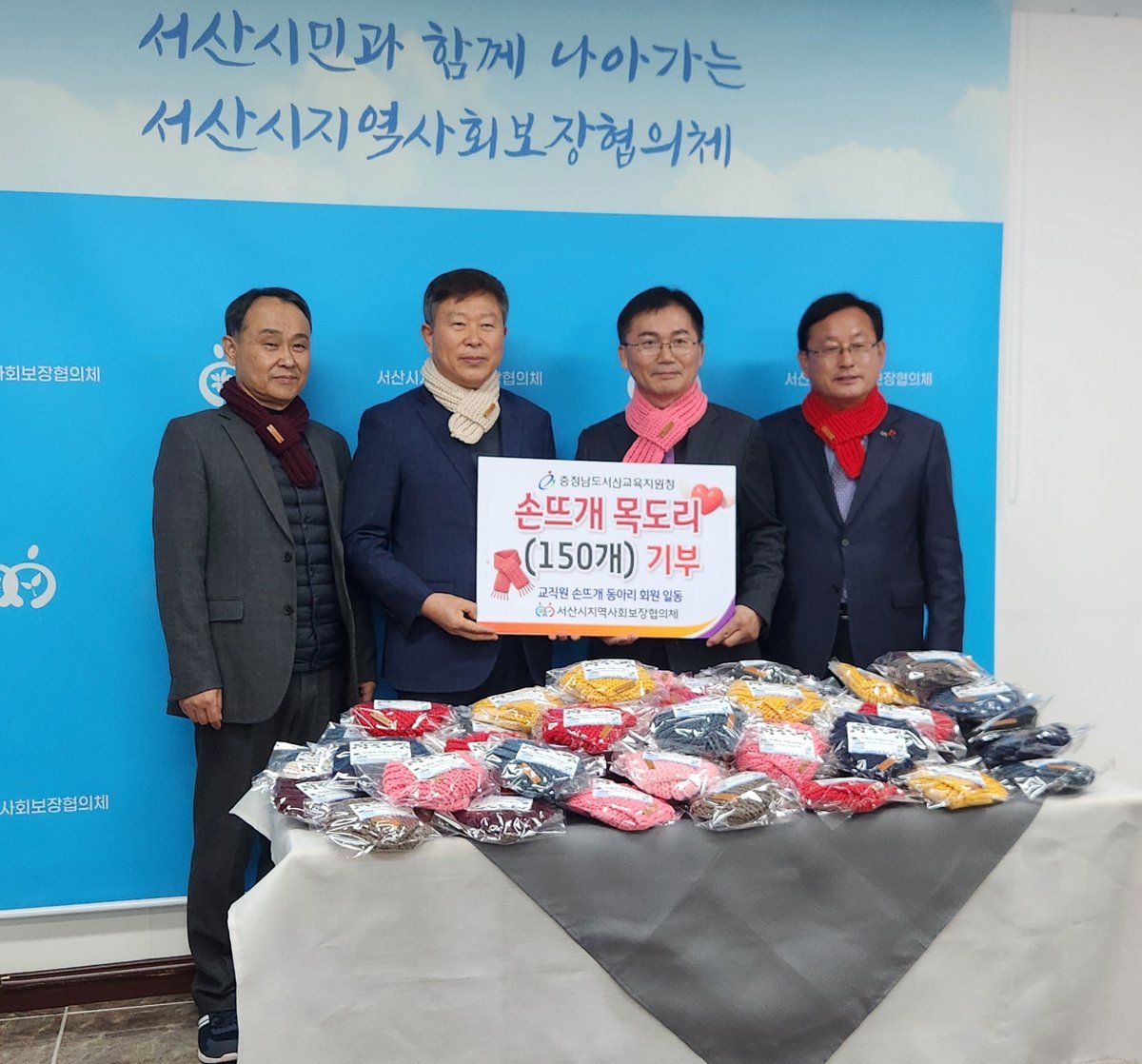 서산시교육지원청, 서산시지역사회보장협의체에 취약계층을 위한 직접 뜬 목도리 전달 (서산시 제공)