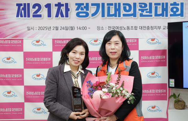 [충청25시] 대전광역시의회 이금선 교육위원장은 학교 비정규직 근로자 근로조건 및 노동인권 개선 공로로 전국여성노동조합 대전충청지부로부터 감사패를 받았다.