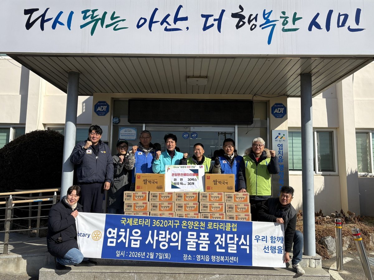 심용근 염치읍장은 "명절마다 따뜻한 나눔을 실천해주시는 온양온천로타리클럽에 감사드린다"며 "앞으로도 민·관이 협력하는 나눔 문화가 지역사회에 정착될 수 있도록 적극 노력하겠다"고 밝혔다.