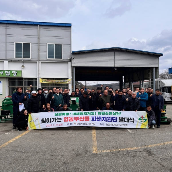 [충청25시] 당진시농업기술센터는 지난 25일 찾아가는 영농부산물 파쇄지원단 발대식 개최 및 안전교육을 진행하고 3월부터 영농부산물 파쇄지원단을 운영할 예정이라고 밝혔다.