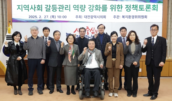 [충청25시] 대전시의회 복지환경위원회 황경아 의원은 27일 대전시의회 소통실에서 ‘지역사회 갈등관리 역량 강화를 위한 정책토론회’를 개최했다.