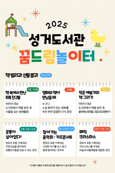 [충청25시] 천안시 성거도서관은 ‘꿈드림놀이터’를 운영한다고 28일 밝혔다.