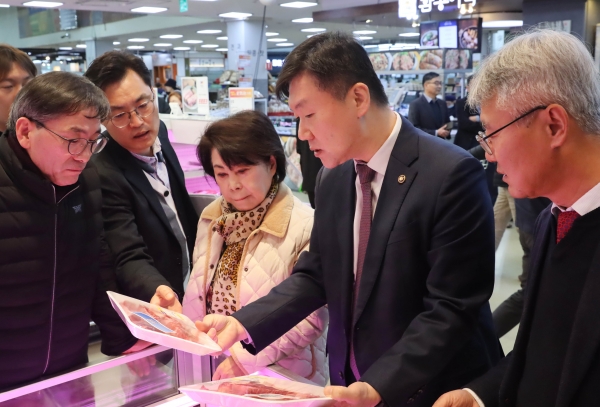 [충청25시] 박범수 농림축산식품부 차관은 3월 5일 오후, 단기 비육 한우고기를 시범 판매하는 서울 양재동 소재 농협 하나로마트를 방문해 업계의견을 청취하고 현장 관계자 등을 격려했다.