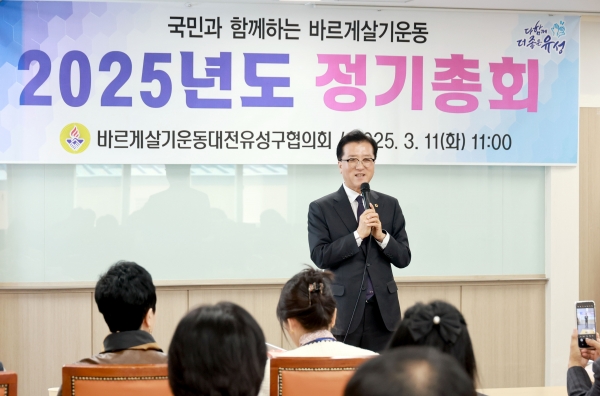 [충청25시] 대전시의회 조원휘 의장은 11일 바르게살기운동 대전시유성구협의회에서 개최된 2025년 정기총회에 참석해 바르게살기운동 정신 실천에 앞장서며 지역사회에 헌신해 온 유성구협의회 회원들에게 감사를 표했다.