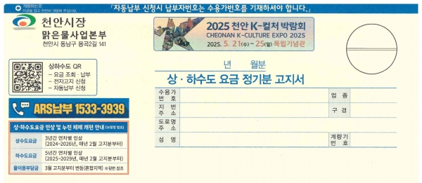 [충청25시] 천안시 맑은물사업본부는 상하수도요금 고지서에 정보무늬를 도입한다고 19일 밝혔다.