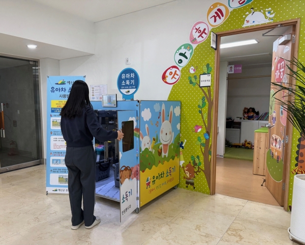 [충청25시] 예산군이 군청 1층 유아휴게실 앞에 설치된 ‘유아차·휠체어 등 다용도 소독기’ 사용을 독려하고 나섰다.