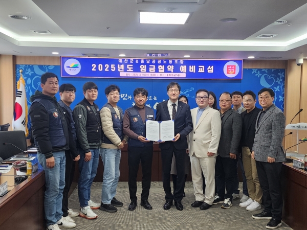 [충청25시] 예산군은 충남공공노동조합과 지난 19일 군청 중회의실에서 2025년 임금협상을 위한 예비교섭을 진행했다고 밝혔다.