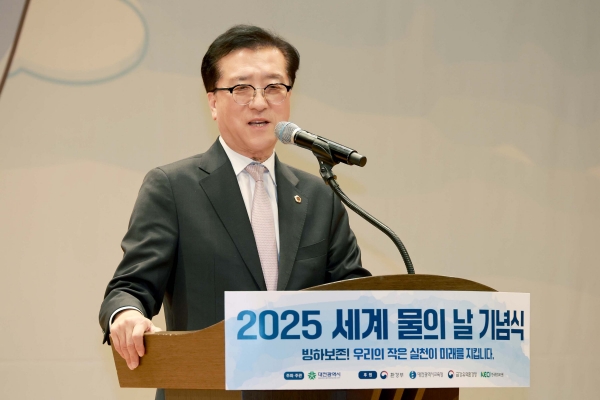 [충청25시] 대전시의회 조원휘 의장은 20일 대전시청에서 개최된 2025년 세계 물의 날 기념식에 참석해 기후위기 시대를 대응하기 위한 체계적인 물관리 정책과 물 산업 육성을 강조했다.