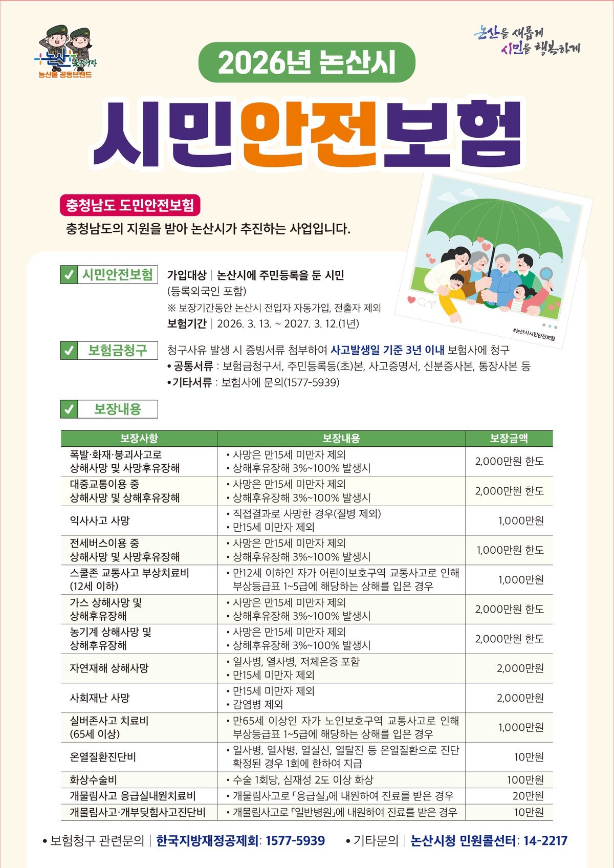 [충청25시] 논산시는 시민들이 일상생활 중 발생할 수 있는 각종 재난과 안전사고에 대비하기 위해 시민 안전 보험을 운영하고 있다.