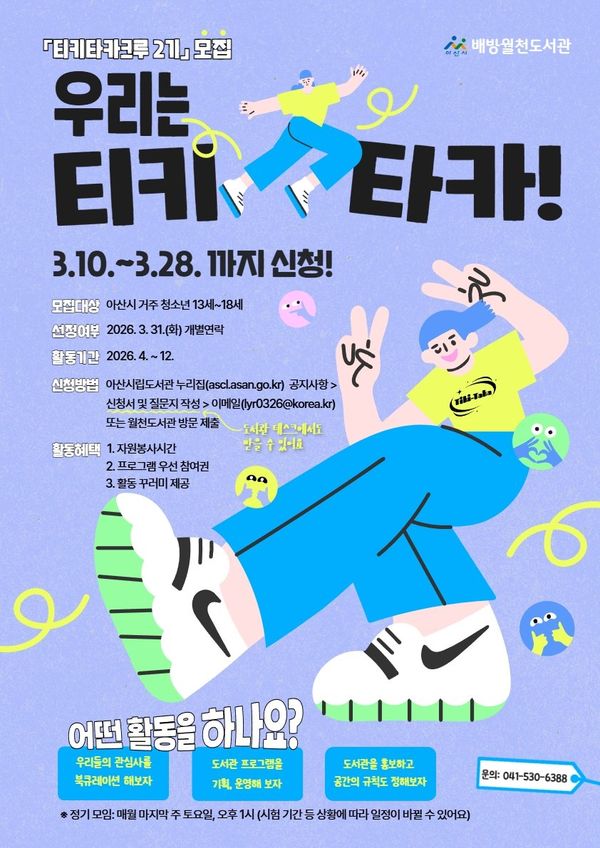 한편 이번 공연은 배방월천도서관 1층 ‘일상공감라운지’에서 오후 3시에 진행되며 사전 신청 없이 누구나 관람할 수 있다.