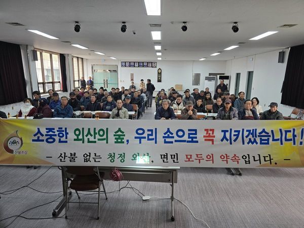 한편 외산면은 지난 3일부터 23개 마을을 직접 찾아다니며 찾아가는 산불 예방 교육 을 실시하며 마을 주민들에게 초동 진화 신고 방법 대피요령 등 산불 예방과 관련한 교육을 추진하고 있다.