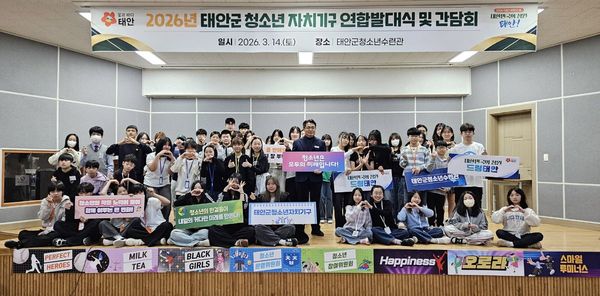 [충청25시] 태안군이 지역 청소년들의 자치 참여를 확대하고 주도적인 활동을 이끌 청소년자치기구의 연합발대식을 열고 본격적인 운영에 들어갔다.