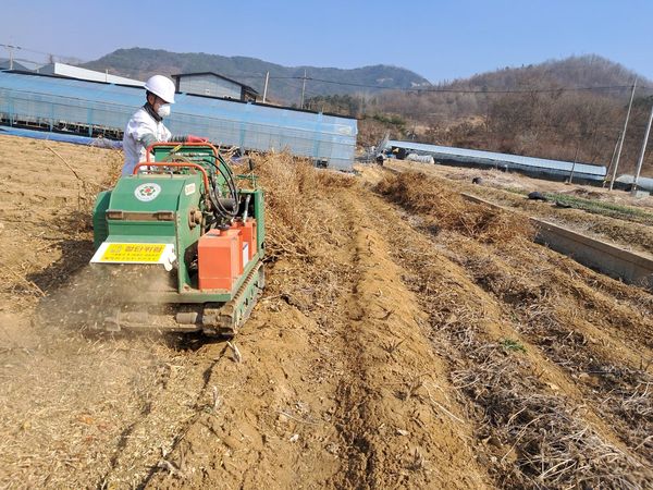 영농부산물 파쇄는 봄철 산불을 예방할 뿐 아니라 퇴비를 환원하고 일손 돕기에도 큰 효과를 보이고 있다.