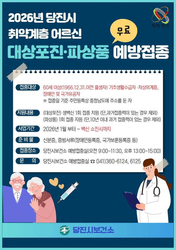 [충청25시] 당진시는 2026년 건강취약계층 예방접종 지원사업을 확대 운영한다고 17일 밝혔다.