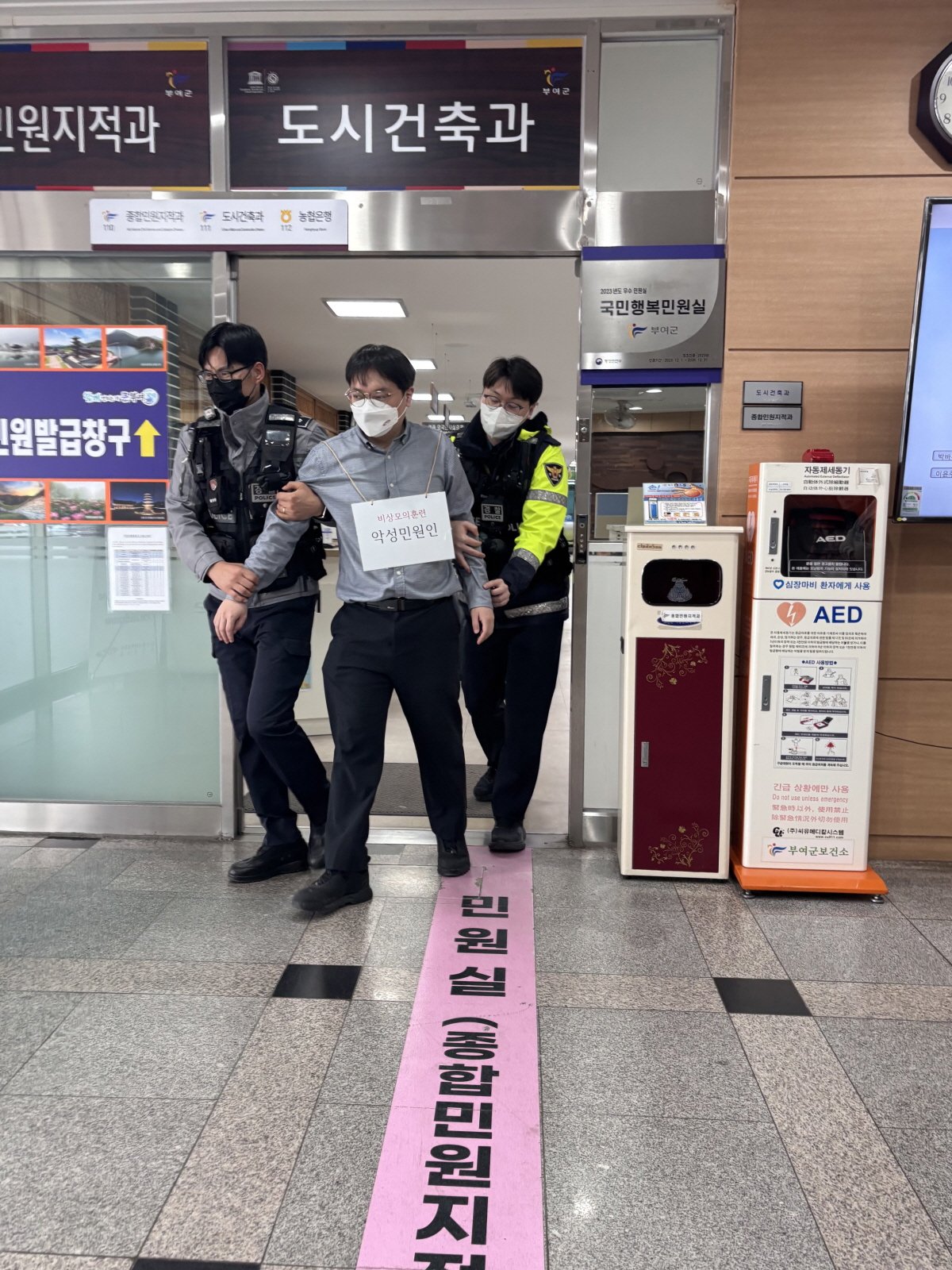 [충청25시] 부여군은 부여경찰서와 합동으로 민원인의 폭언 및 폭행 등 위기 상황에 대비한 ‘2026년 상반기 특이 민원 대응 모의훈련’을 진행했다고 18일 밝혔다.