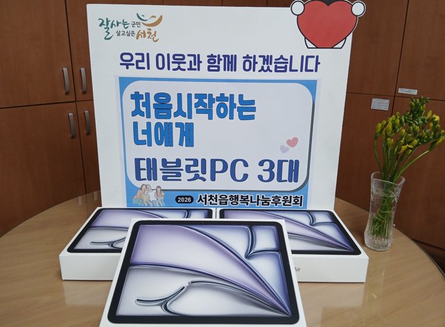 [충청25시] 서천읍행복나눔후원회는 지난 11일 신입 대학생 3명에게 태블릿PC를 전달 하는 ‘처음 시작하는 너에게’사업을 추진했다.