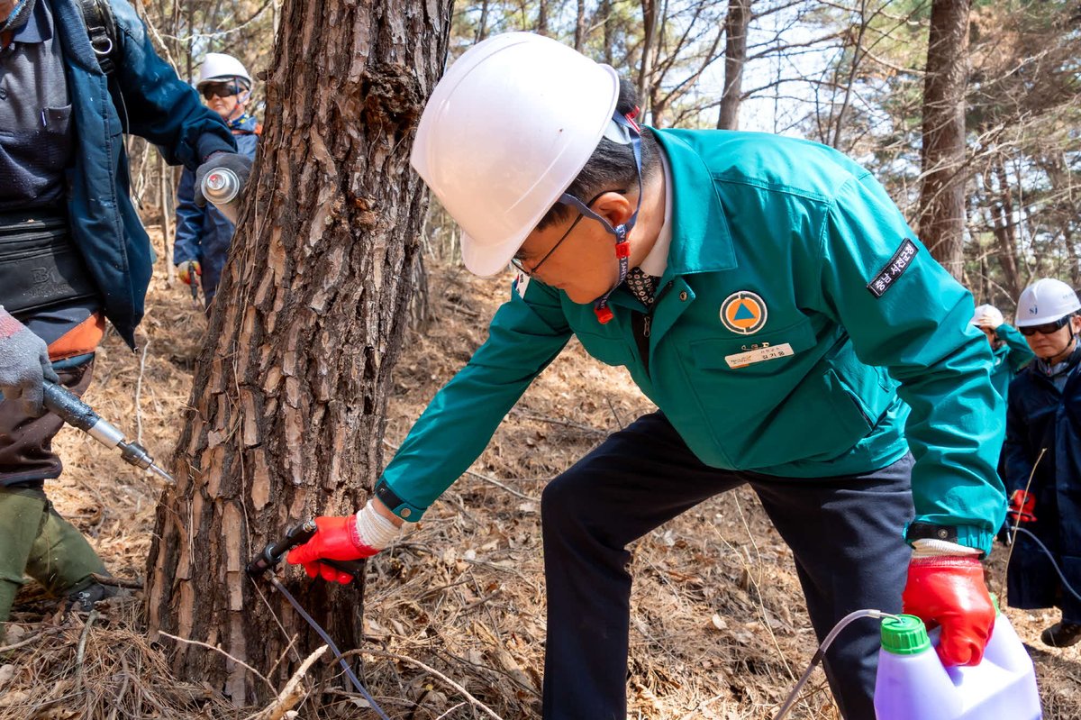 재선충병 확산 방지 총력 선제 대응체계 점검 종천면 지석리 소나무재선충병 예방나무주사 사업 현장에서는 방제 대응 체계 전반에 대한 점검이 이뤄졌다.