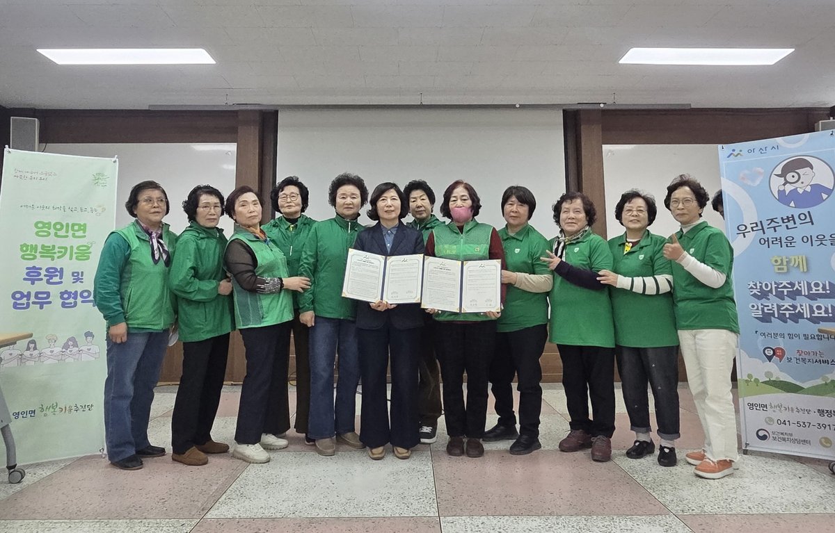 [충청25시] 아산시 영인면은 지난 17일 영인면 새마을부녀회와 복지사각지대 해소 및 위기가구 발굴을 위한 업무협약을 체결하고 부녀회원 11명을 명예사회복지공무원으로 위촉한 뒤 역량강화 교육을 실시했다.