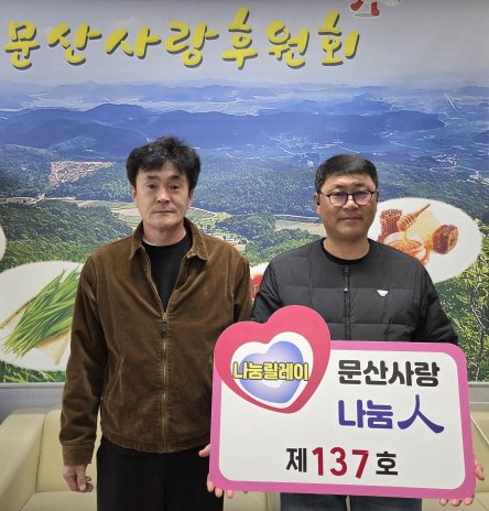 [충청25시] 문산면 문산사랑후원회는 지난 17일 이웃사랑 실천을 위해 성금 100만원을 기탁한 한일건설 박성구 대표를 ‘문산사랑나눔인 137호’로 선정했다.