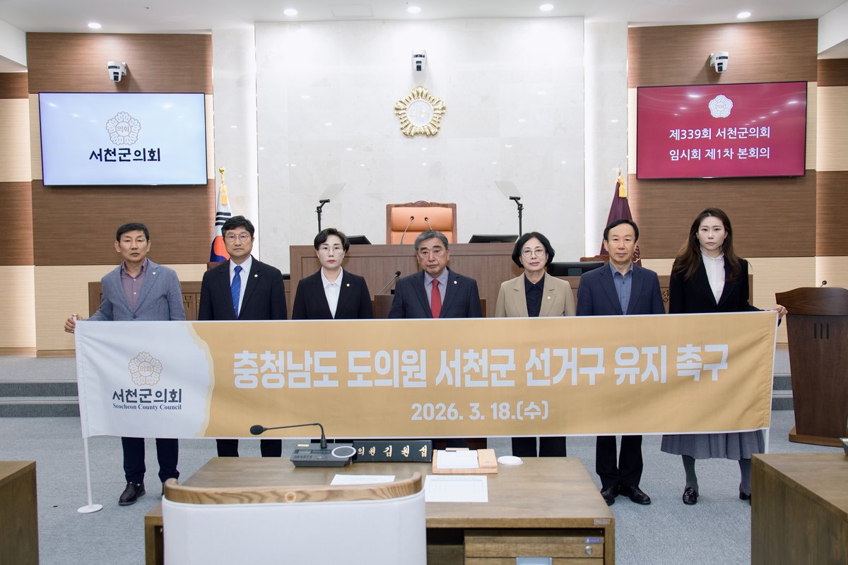 [충청25시] 서천군의회는 18일 오후 제339회 긴급 임시회를 열고 7명 의원 전원의 찬성으로 '충청남도 도의원 서천군 선거구 유지 촉구 건의안'을 채택했다.