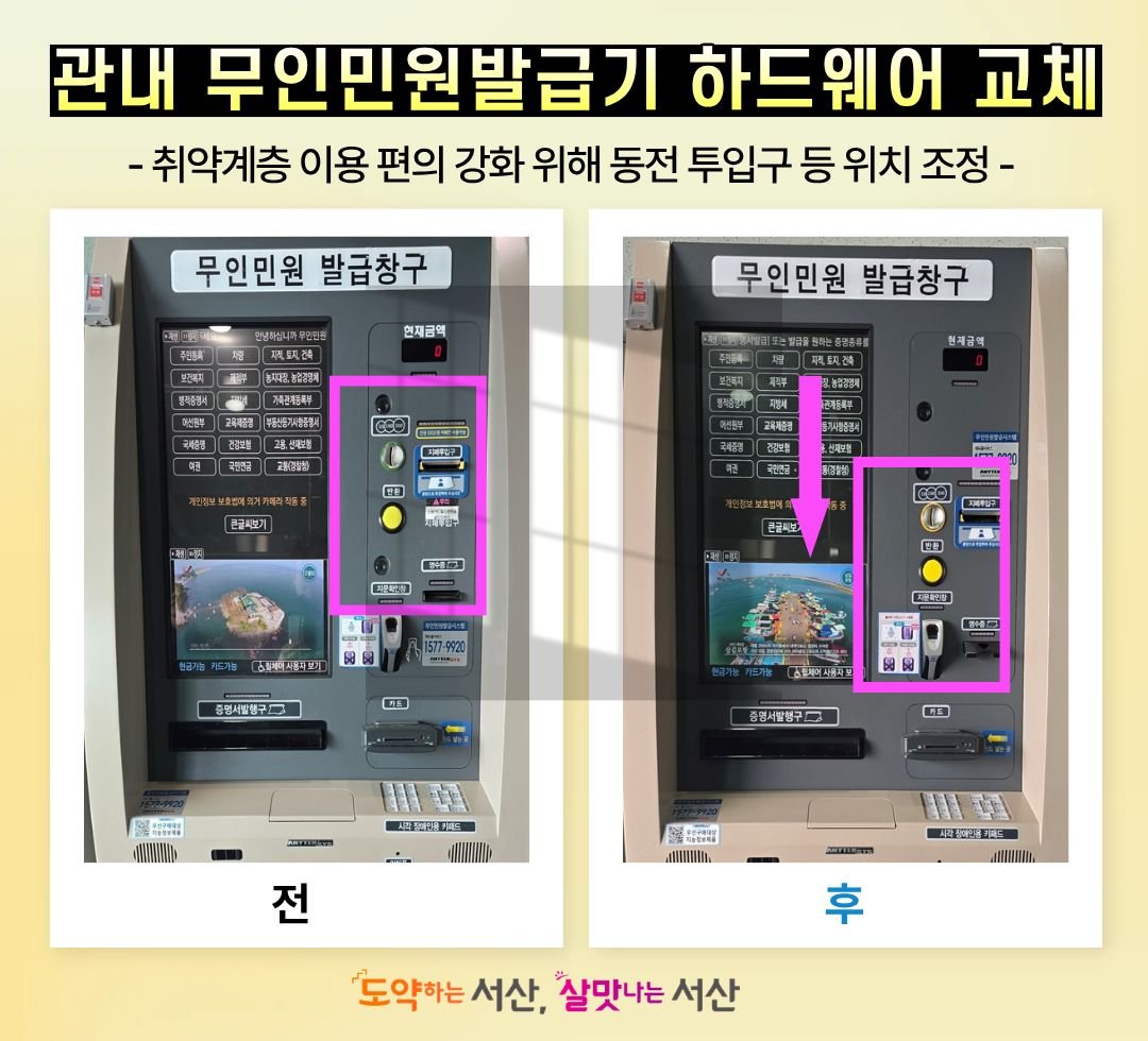[충청25시] 충남 서산시는 관내 무인민원발급기 27대 중 16대의 하드웨어를 교체했다고 밝혔다.