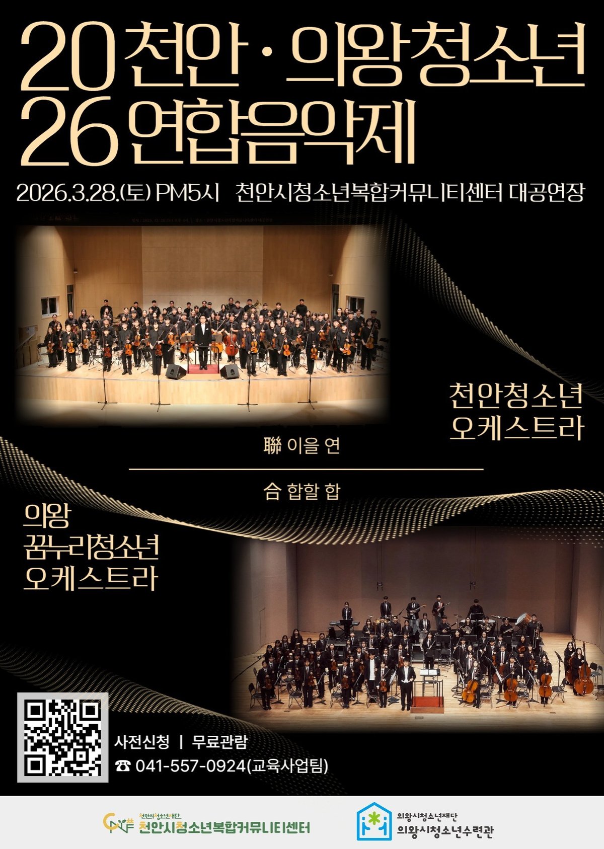 김응일 천안시청소년재단 대표이사 직무대행은 “청소년들이 협연을 통해 협동심을 기르고 시민들에게는 수준 높은 클래식 공연을 선사하는 뜻깊은 자리가 될 것”이라고 말했다.