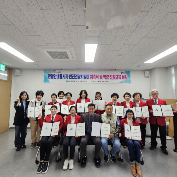 [충청25시] 아산시가 25일 ‘2025-2026 충남·아산 방문의 해’를 맞아 문화관광해설사와 관광통역안내사들을 대상으로 ‘아산시 안전관광 지킴이’ 위촉식을 가졌다.