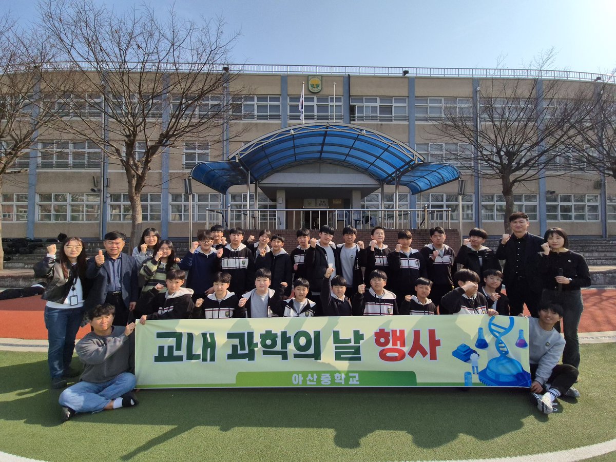[충청25시] 아산중학교는 3월 23일 월요일 교내에서 '과학의 날'을 맞아 '창의적인 과학적 사고로 미래를 여는 학습'을 주제로 '교내 과학의 날 행사'를 운영했다.