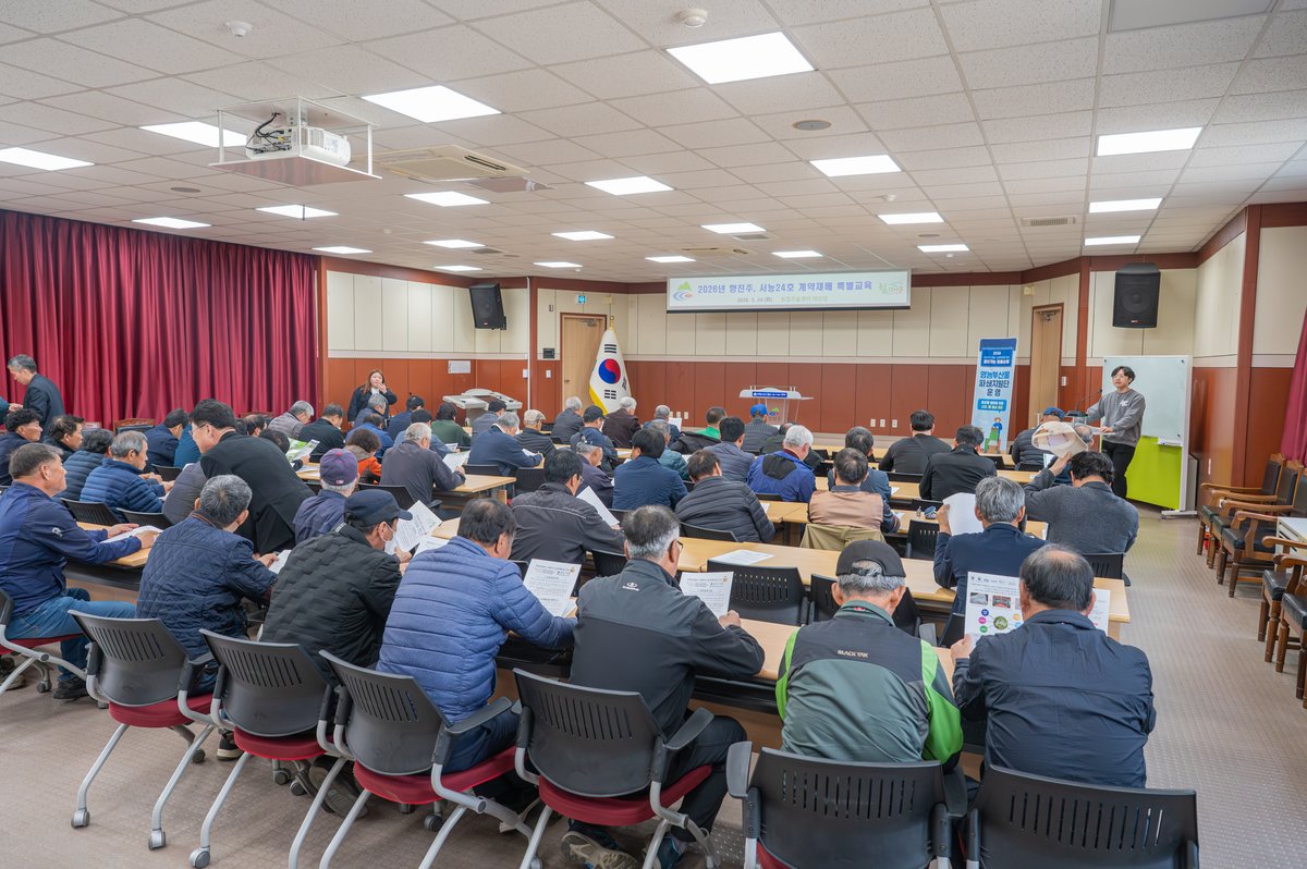 청양군농업기술센터은 지난 24일 센터 대강당에서 향진주 및 서농24 계약재배 농가 및 관계자 80여명을 대상으로 고품질 브랜드 쌀 생산을 위한 특별교육을 진행했다.