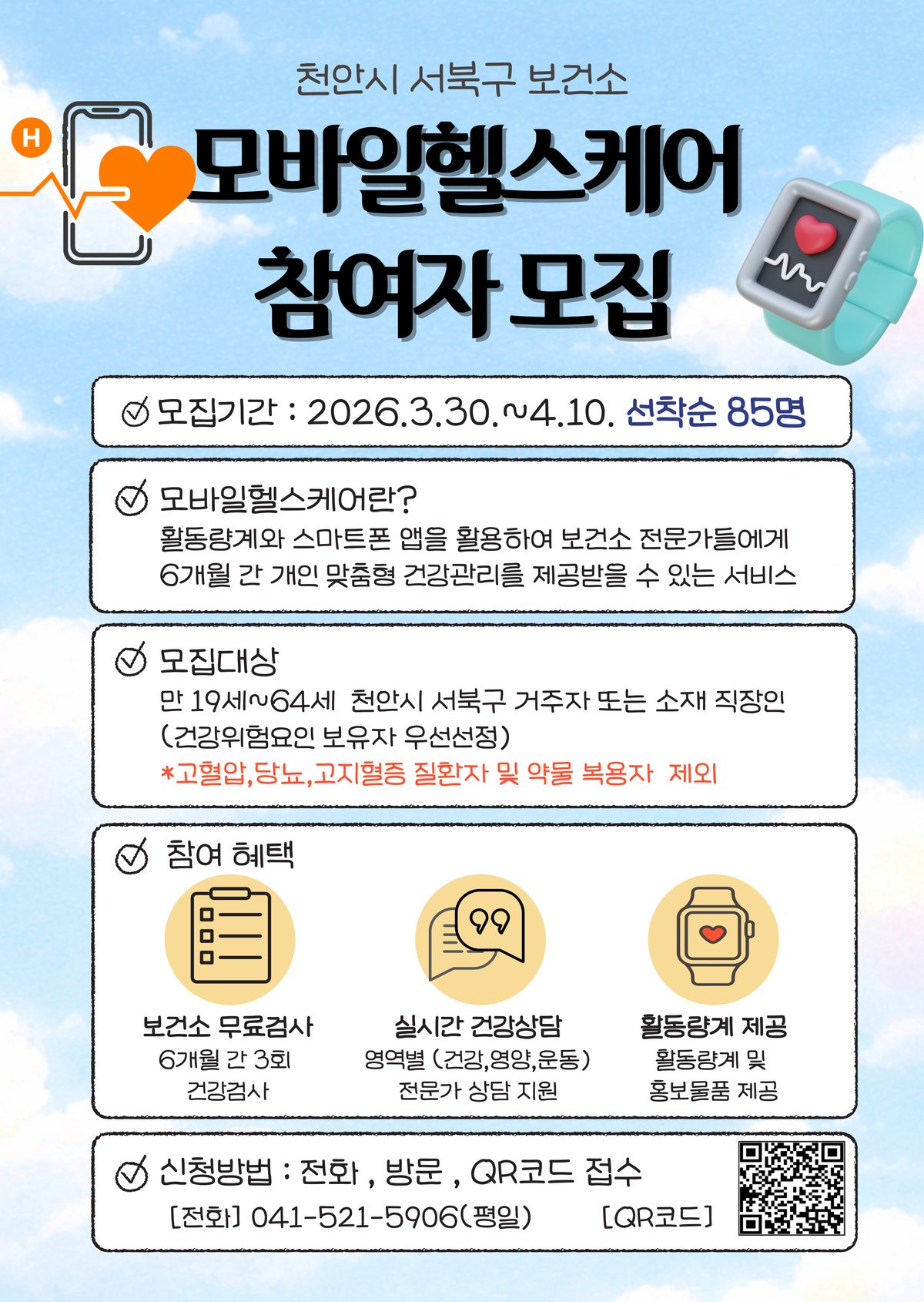참여 신청은 전화, 방문, 홍보문 내 정보무늬를 통해 가능하다.