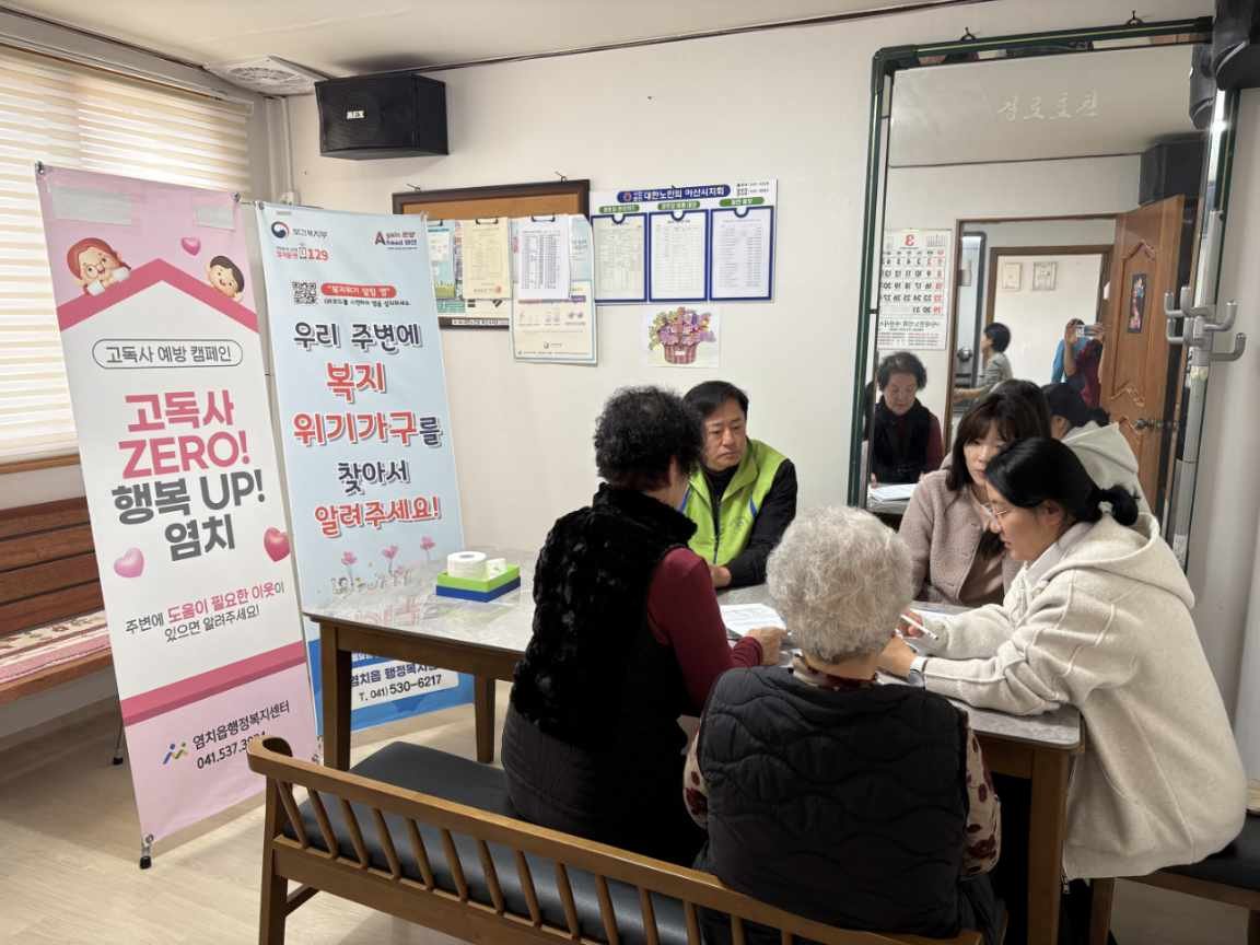 [충청25시] 아산시 염치읍 행정복지센터는 25일 오전 11시 산양3리 마을회관에서 마을 어르신들을 대상으로 고독사 예방 현장 밀착형 캠페인을 전개했다.