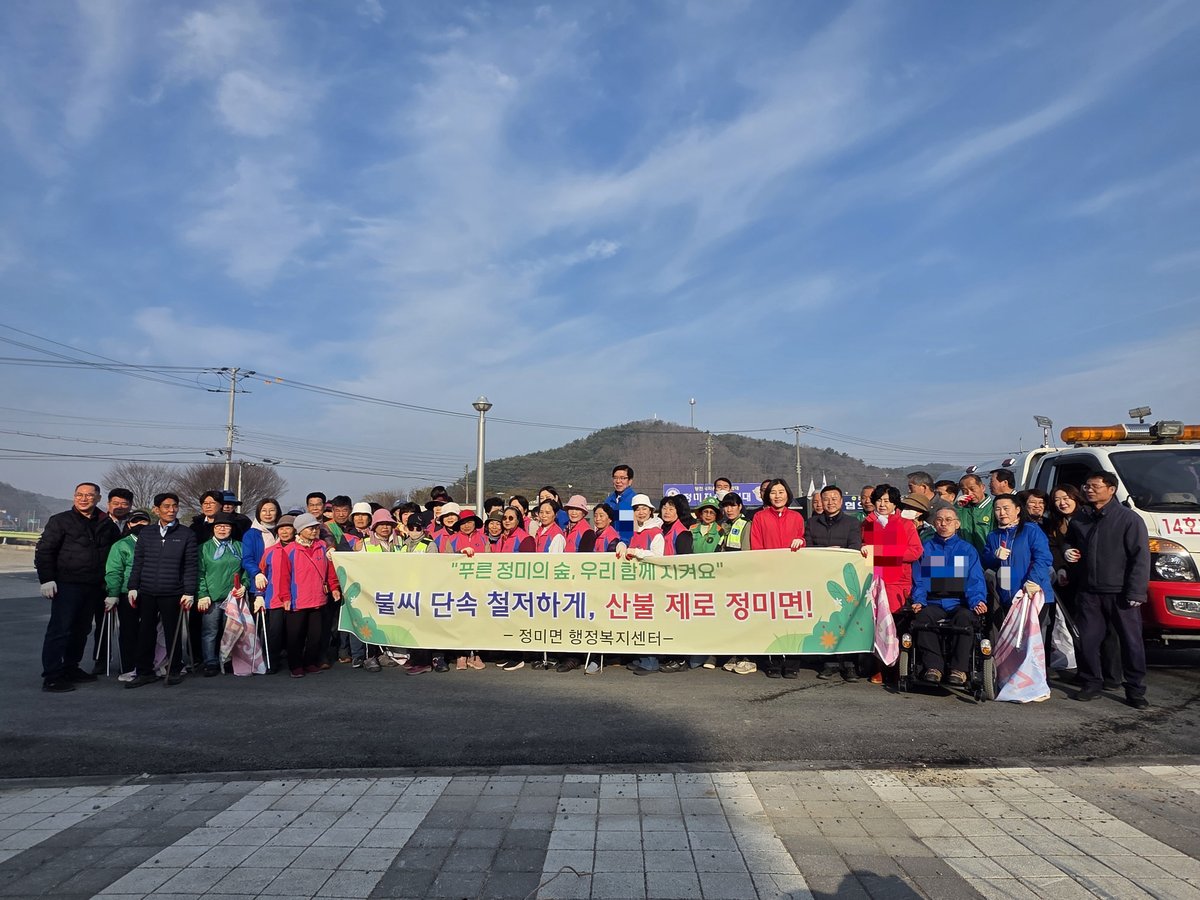 이날 캠페인 참여자들은 불씨 단속 철저하게, 산불 제로 정미면 이라는 구호를 함께 제창하며 결의를 다졌으며 각 마을 이장은 마을 방송을 통해 마을 주민들에게 산불 예방에 관한 내용을 안내했다.