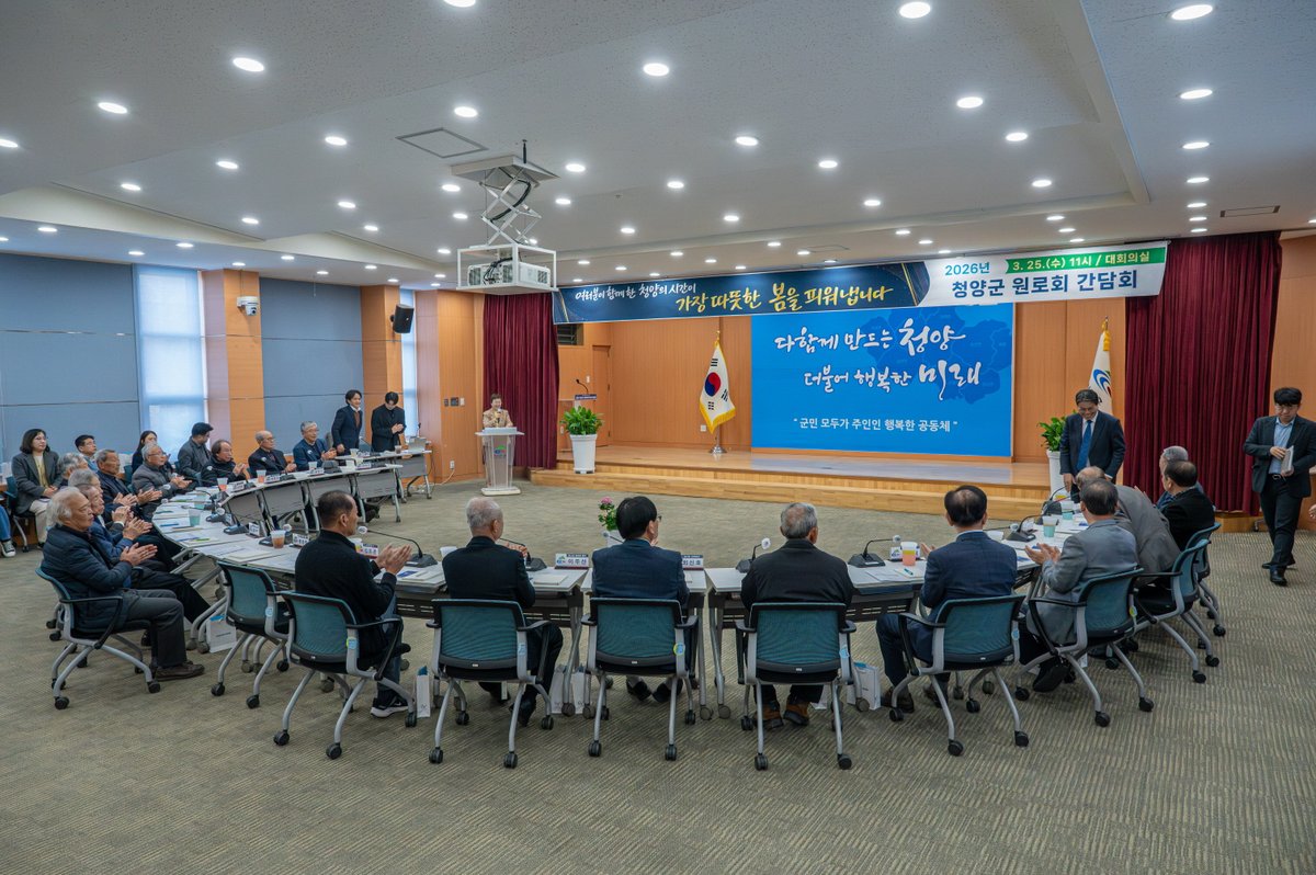 [충청25시] 청양군이 지역 사회 발전을 위해 헌신해 온 어르신들의 고견을 듣고 이를 군정에 반영하기 위한 ‘2026년 원로회 간담회’를 개최했다.