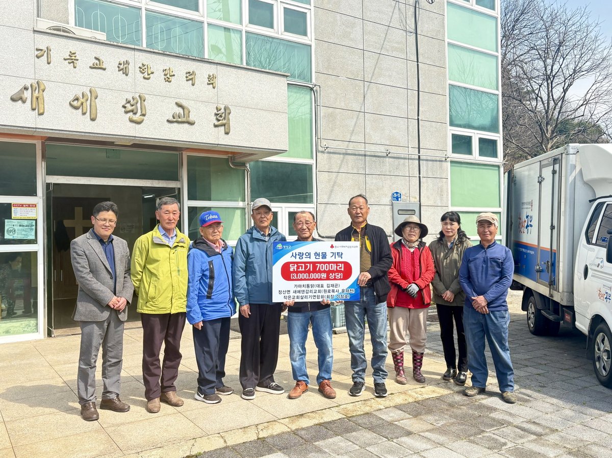 [충청25시] 청양군은 정산면 새에덴감리교회와 가마치통닭, 작은교회살리기연합회가 지역 내 취약계층 어르신들을 위해 닭고기 700마리를 기탁했다고 26일 밝혔다.