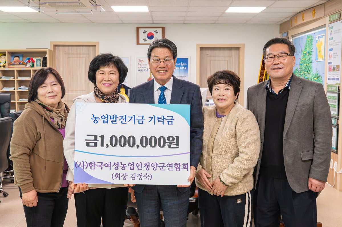 [충청25시] 한국여성농업인청양군연합회가 지역 농업 발전과 지속 가능한 농촌 사회 조성을 위해 지난 25일 청양군을 방문해 농업발전기금 100만원을 기탁했다.