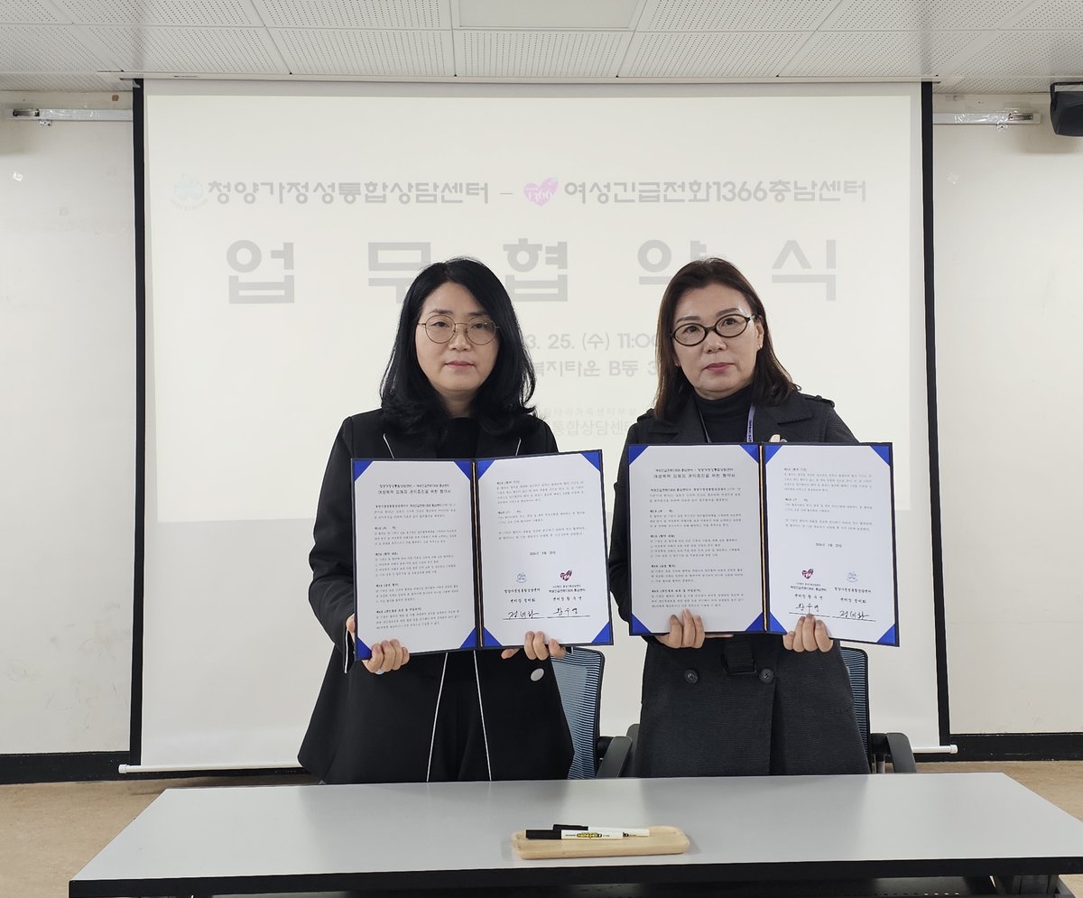 지난 25일 청양복지타운 내 여성회관에서 열린 이번 협약식은 양 기관의 전문성을 결합해 가정폭력, 성폭력, 스토킹 등 위기 상황에 처한 여성들을 보다 신속하고 체계적으로 보호하기 위해 마련됐다.