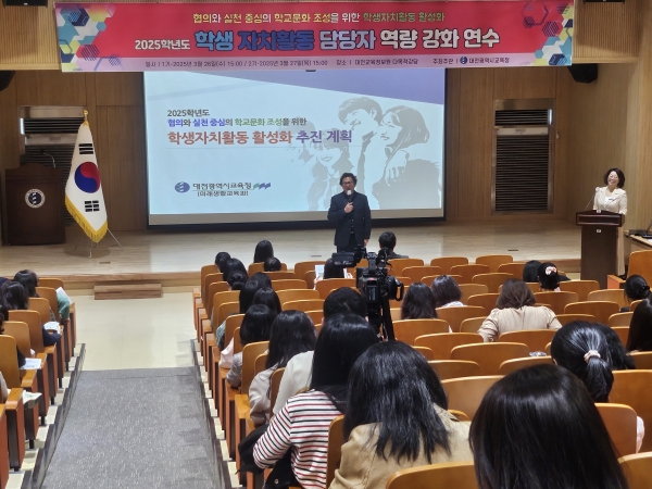 [충청25시] 대전시교육청은 학생자치활동을 활성화하고 학생참여 선순환 체계를 구축하기 위해 초·중·고등학교 학생자치활동 담당 교사 300명을 대상으로 3월 26일부터 27일까지 대전교육정보원에서 ‘2025학년도 학생자치활동 담당자 역량강화 연수’를 실시한다고 밝혔다.