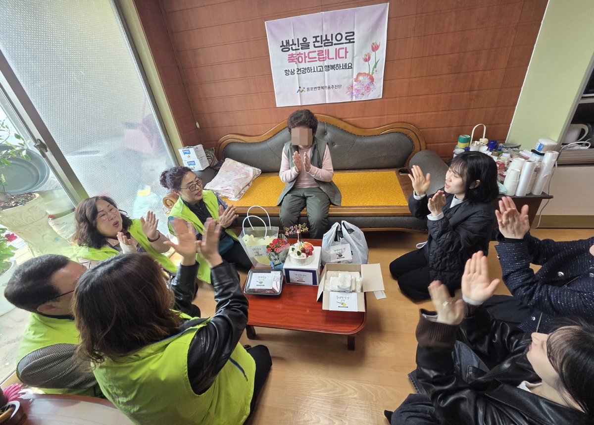 [충청25시] 아산시 둔포면 행복키움추진단은 지난 26일 관내 홀몸 어르신 1가정을 방문해 생신잔치를 열고 따뜻한 이웃사랑을 실천했다.