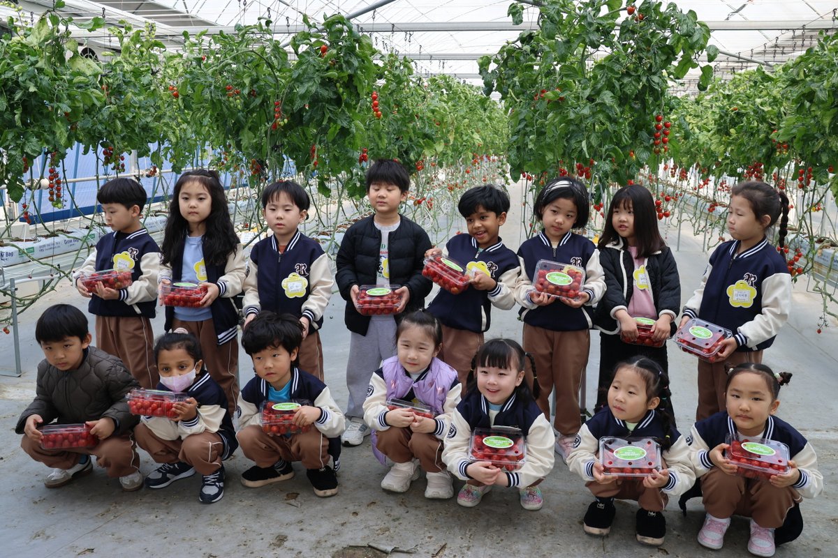 스마트농업 테스트베드 온실에서 진행되는 토마토 수확 체험을 통해 아이들은 빨갛게 익은 토마토를 직접 따보며 정성껏 가꾼 농작물이 주는 정직한 보람을 만끽한다.