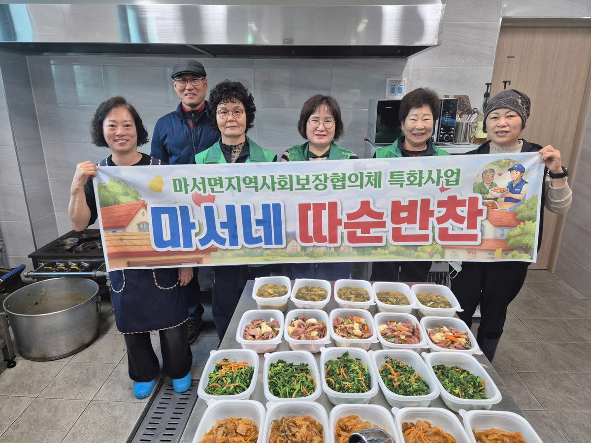 ‘마서네 따순반찬’ 사업은 마서면지역사회보장협의체의 특화사업으로 이번 달에도 산내마을의 시래기, 새마을회의 김치, 삼육수산의 김 등 지역사회의 후원과 협력이 더해져 추진됐다.