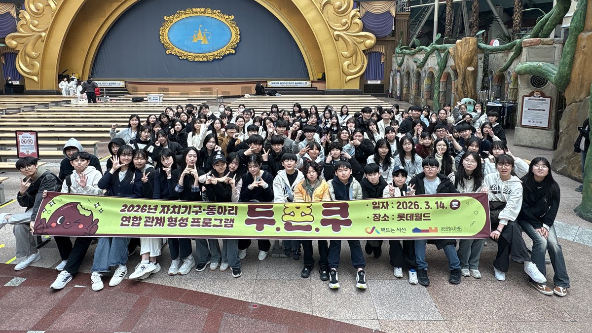 [충청25시] 서산문화복지센터는 지난 3월 14일 센터 소속 자치기구 및 동아리 청소년 115명과 함께 서울 롯데월드에서 진행한 연합 관계 형성 프로그램 '두.쫀.쿠'가 청소년들의 열띤 참여 속에 성공적으로 마무리됐다고 밝혔다.