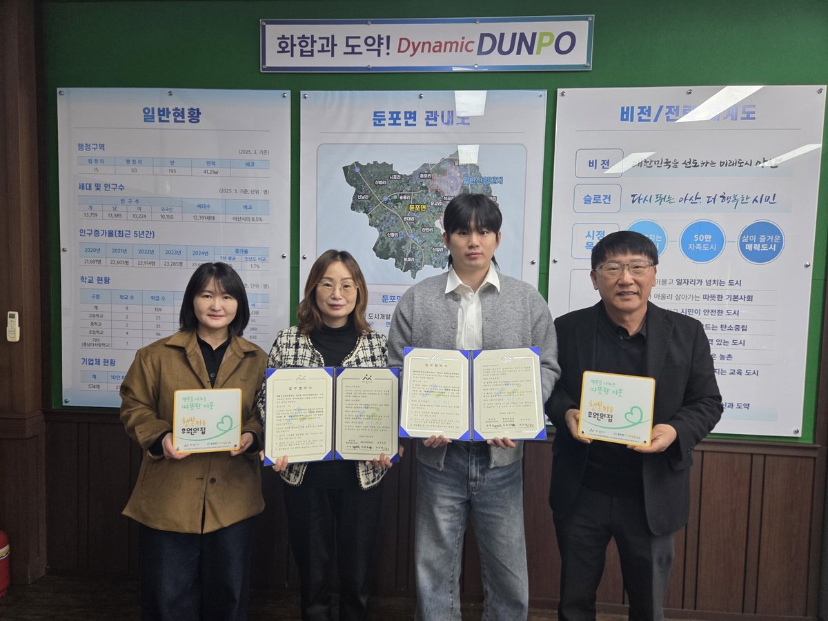 이모완 면장은 "우리 지역 어르신들이 소외되지 않고 건강한 노후를 보내실 수 있도록 힘을 보태주신 두 센터장님께 깊이 감사드린다"며 "민간의 전문적인 돌봄 노하우가 행정과 결합해 더욱 촘촘하고 따뜻한 둔포면을 만드는 마중물이 되길 기대한다"고 전했다.