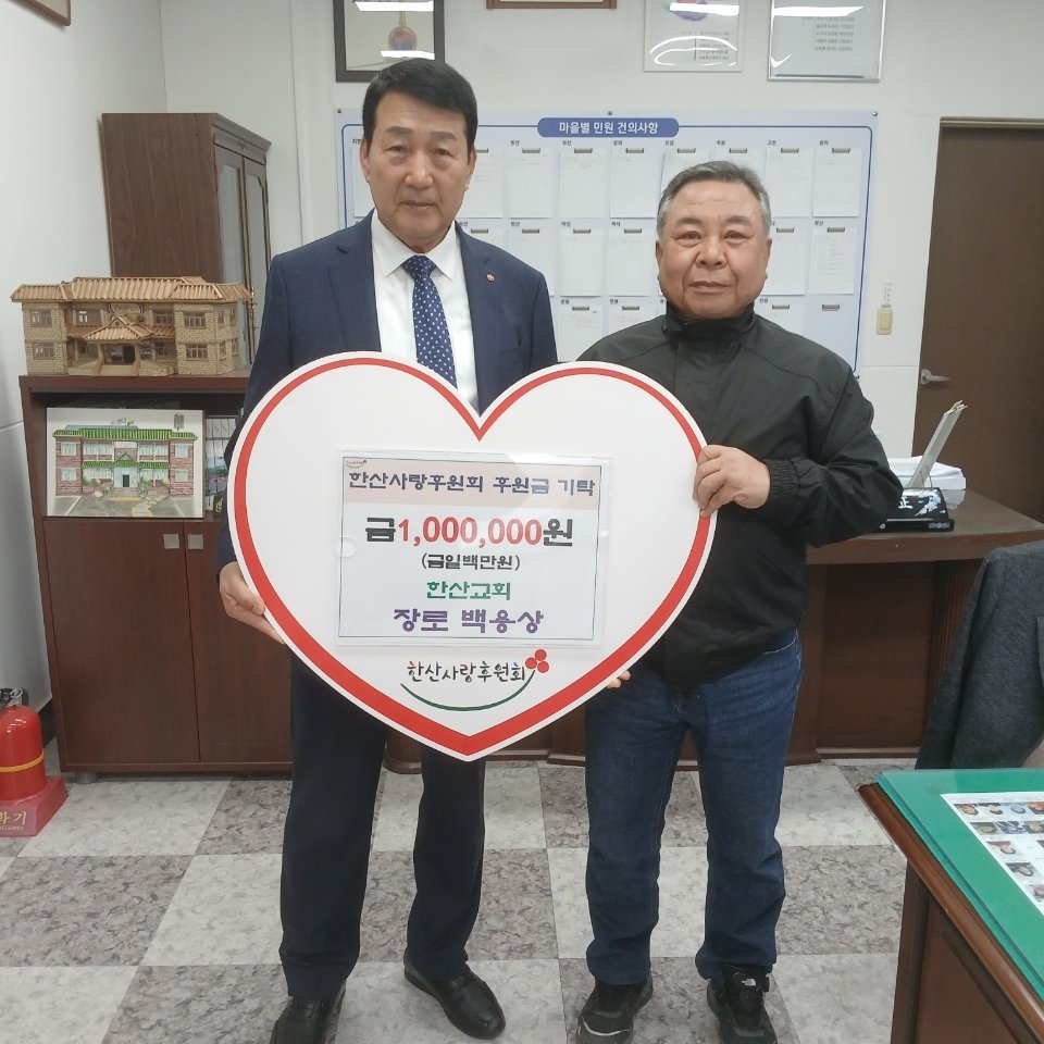 한편 이번에 기탁된 후원금은 한산사랑후원회를 통해 관내 독거노인, 저소득 가정 등 복지사각지대에 놓인 이웃을 위해 사용될 예정이다.