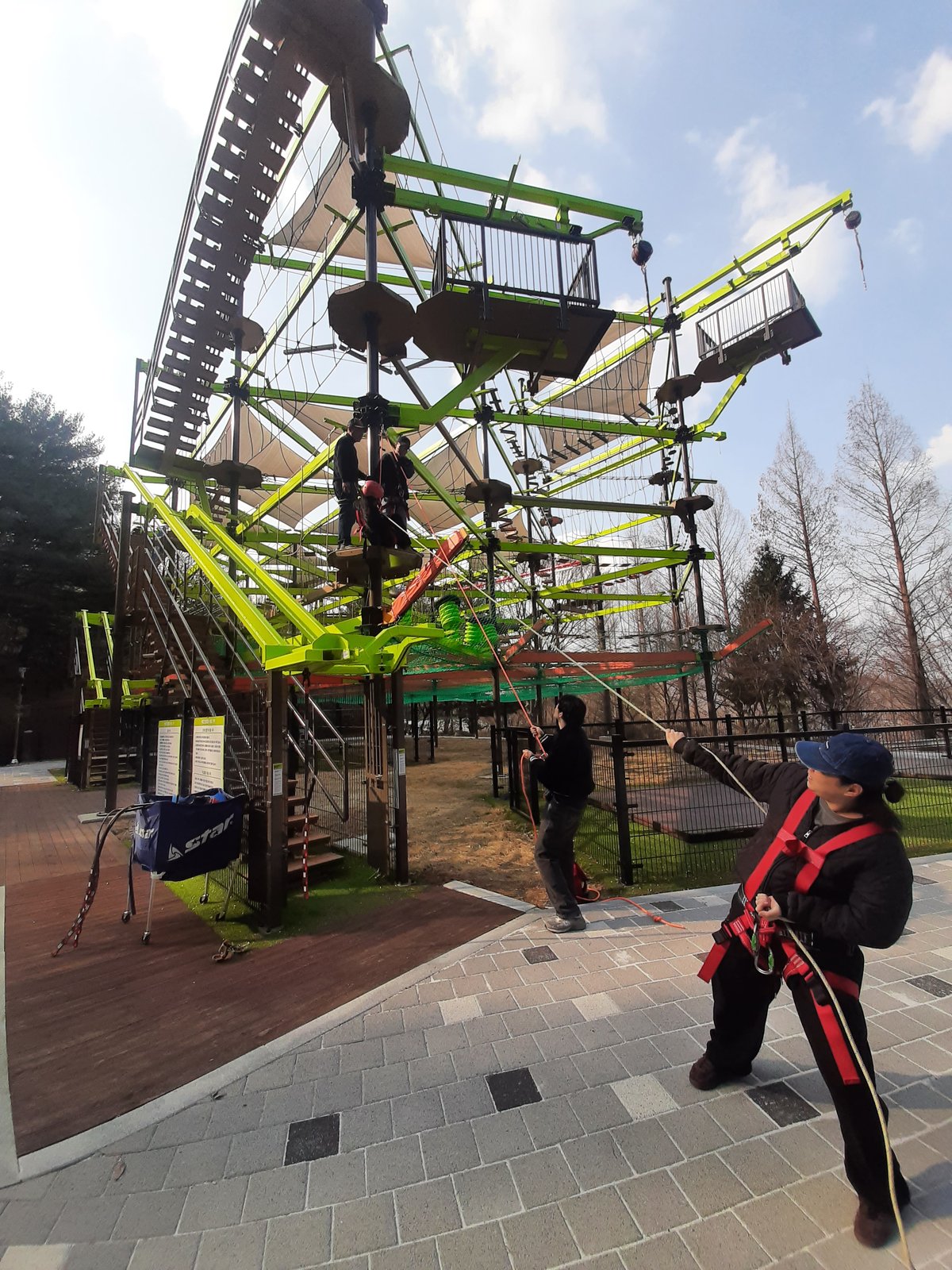 지난 3월 12일 야영 수련 교육팀 교육 요원과 보조강사 등을 대상으로 실시된 이번 훈련에서는 다방향 복합 모험 활동 구조물의 특성 이해와 올바른 학생 지도법을 교육했다.