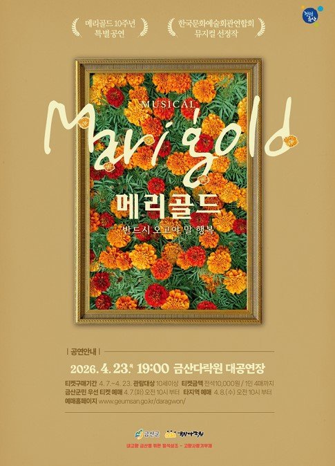 [충청25시] 금산다락원은 4월 23일 오후 7시 생명의 집 대공연장에서 대학로 감성 뮤지컬 ‘메리골드’를 선보인다.
