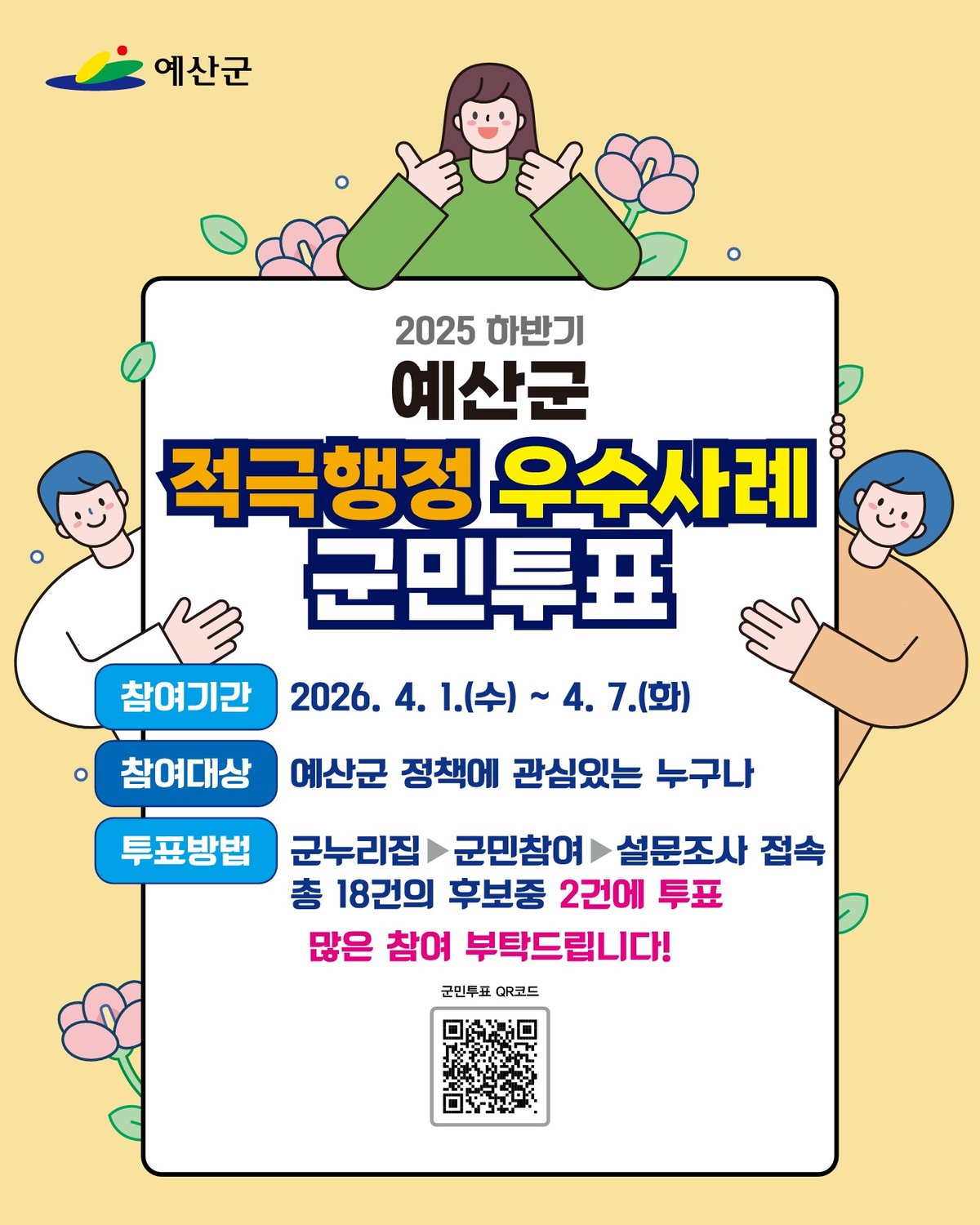 예산군, 2025년 하반기 적극행정 우수공무원 선발 군민투표 실시