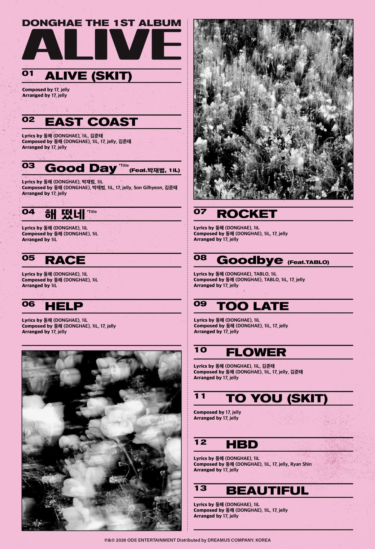 동해는 2일 0시 공식 SNS 채널을 통해 첫 번째 정규앨범 'ALIVE'의 트랙리스트를 공개했다.