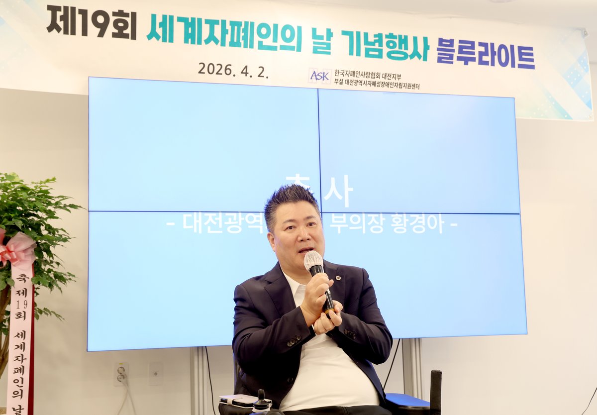 [충청25시] 대전시의회 황경아 부의장은 2일 세계 자폐인의 날 '블루라이트'행사에 참석해 자폐성 장애인 가족들의 고충을 공유하고 자폐성 장애 인식 개선 의지를 다졌다.